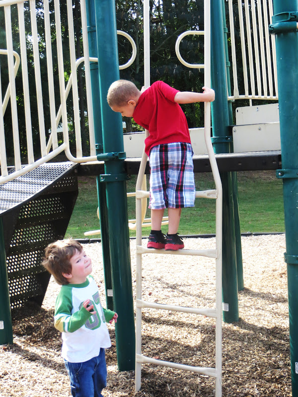 Tommy finally made it up the ladder so he could follow Sammy :)